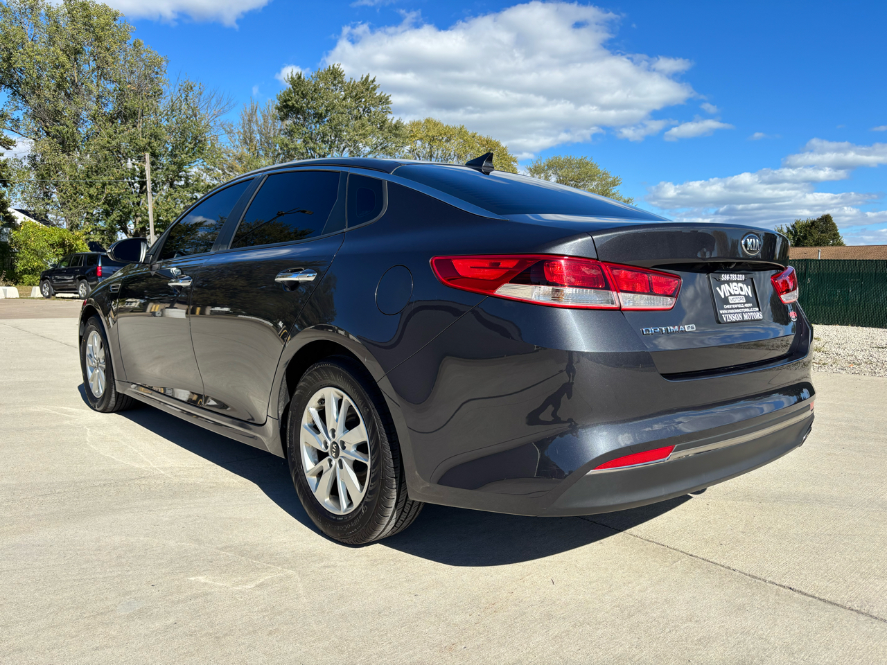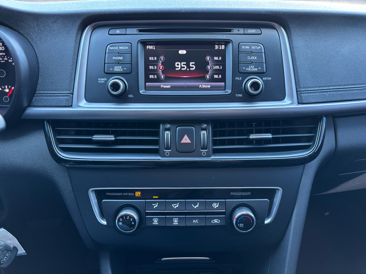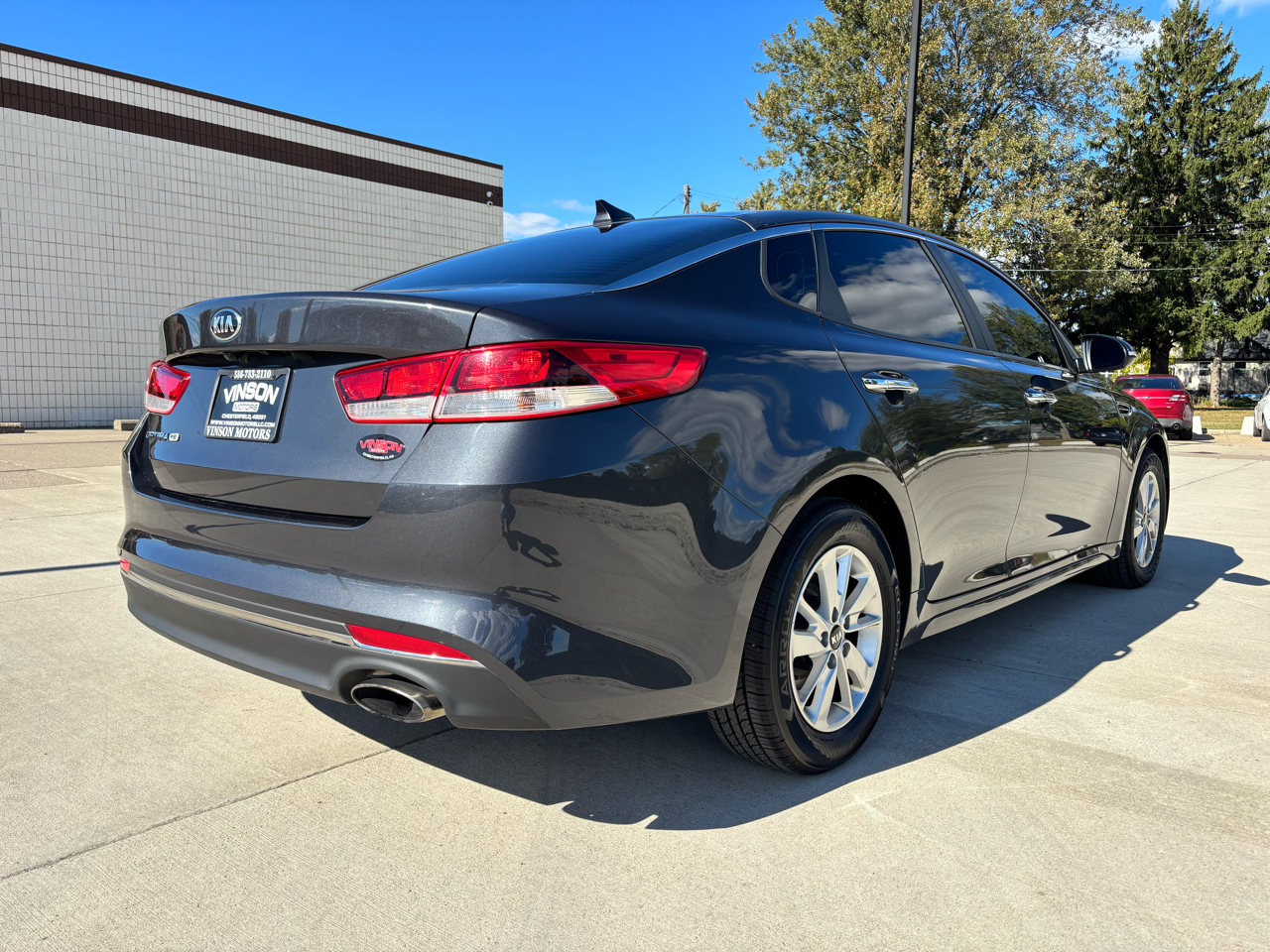 Hop into this sleek and stylish Gray 2017 Kia Optima with confidence, knowing that a Carfax report is available for your peace of mind. This beauty is powered by a 2.4L DOHC I4 GDI engine paired with a smooth 6-Speed Automatic transmission with Sportmatic drive mode select system. With a comfortable and spacious interior featuring YES Essentials Premium Cloth seats, manual air conditioning, and plenty of storage options, every drive will be a joy. The exterior boasts a modern design with chrome accents, halogen headlamps, and 16-inch tires for a smooth ride. Safety features like side impact beams, dual front airbags, and rear child safety locks provide security on the road. Whether you're running errands around town or embarking on a road trip adventure, this Kia Optima is the perfect companion. Don't miss out on the opportunity to make this reliable and efficient sedan your own!