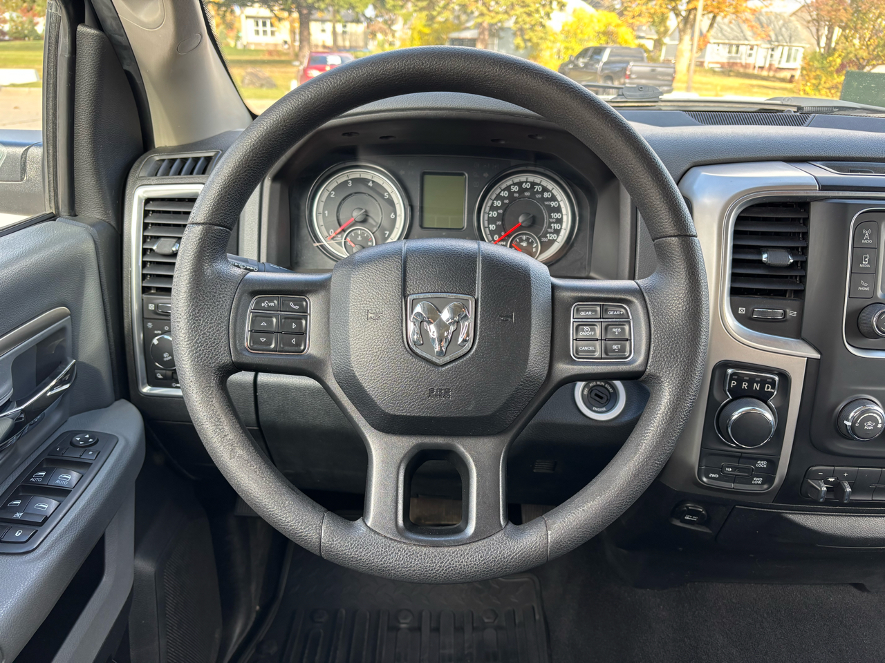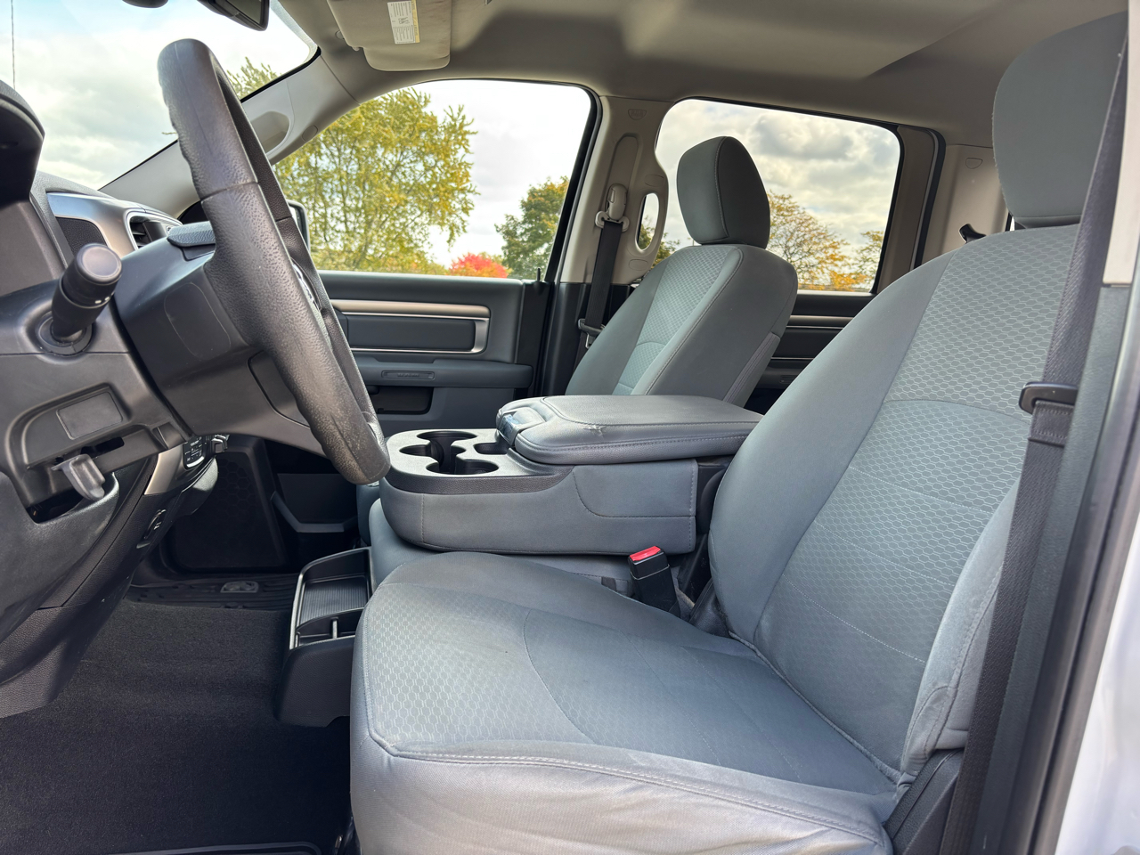 Step into this sleek 2018 RAM 1500 and feel the power of the 5.7L HEMI V8 engine under the hood. With impressive towing capabilities and four-wheel drive, you'll be ready for any adventure that comes your way. The electronic transfer case and anti-spin differential rear axle ensure smooth handling on any terrain. From the deep tinted glass to the fog lamps, this truck is as stylish as it is functional. Inside, enjoy the convenience of cruise control, valet function, and a compass for all your travels. Stay connected with streaming audio and voice activation through the radio system. With a spacious interior featuring deluxe sound insulation and all-weather floor mats, you'll ride in comfort no matter where the road takes you. Safety features like dual-stage front airbags and rear child safety locks give you peace of mind on every journey. Plus, rest assured with the included Carfax report for added confidence in your investment. This 2018 RAM 1500 is ready to hit the road and help you conquer any task in style.
